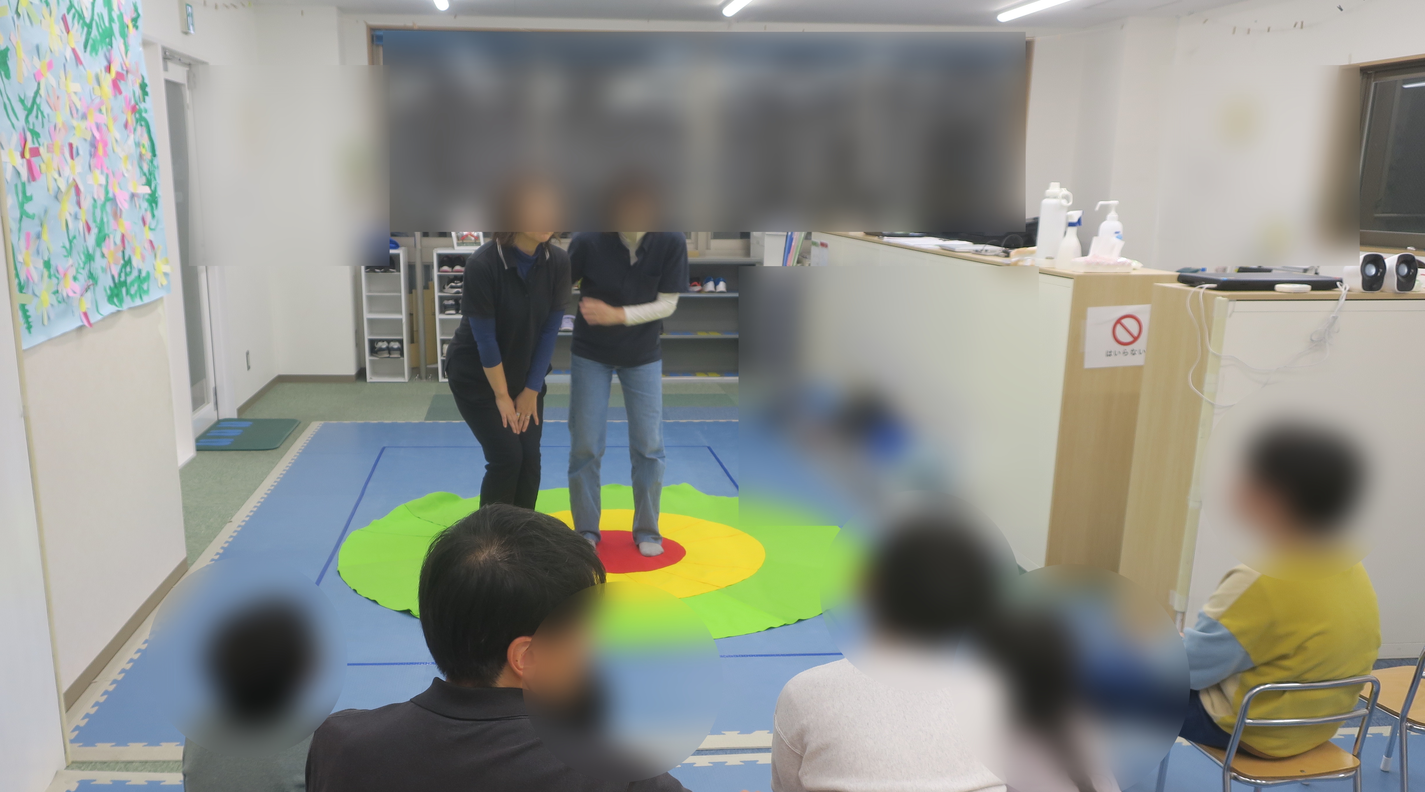 「〇〇くんと仲良しやねん」「お姉ちゃんはこの辺かな」「これはぼくのおばあちゃんやで」などとお友達とおしゃべりしながら、楽しく「人との距離」について考えることができました。