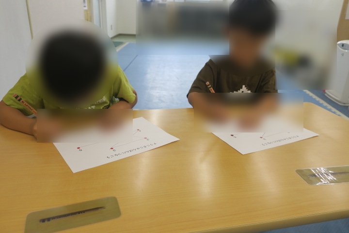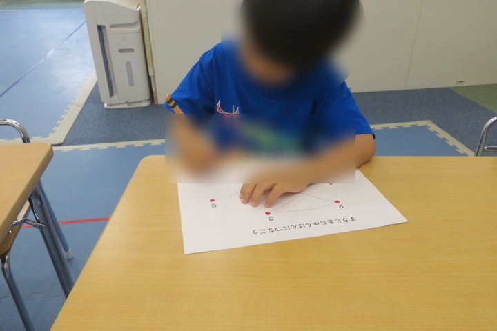 ワークの時間は1~5までの点つなぎと、ひらがなに繋がる線の運筆、迷路などに取り組みました。鉛筆の持ち方や姿勢などにも気をつけながら、丁寧に書くことができていました!椅子に座って黙々とプリントをする姿はとてもかっこよかったです☺