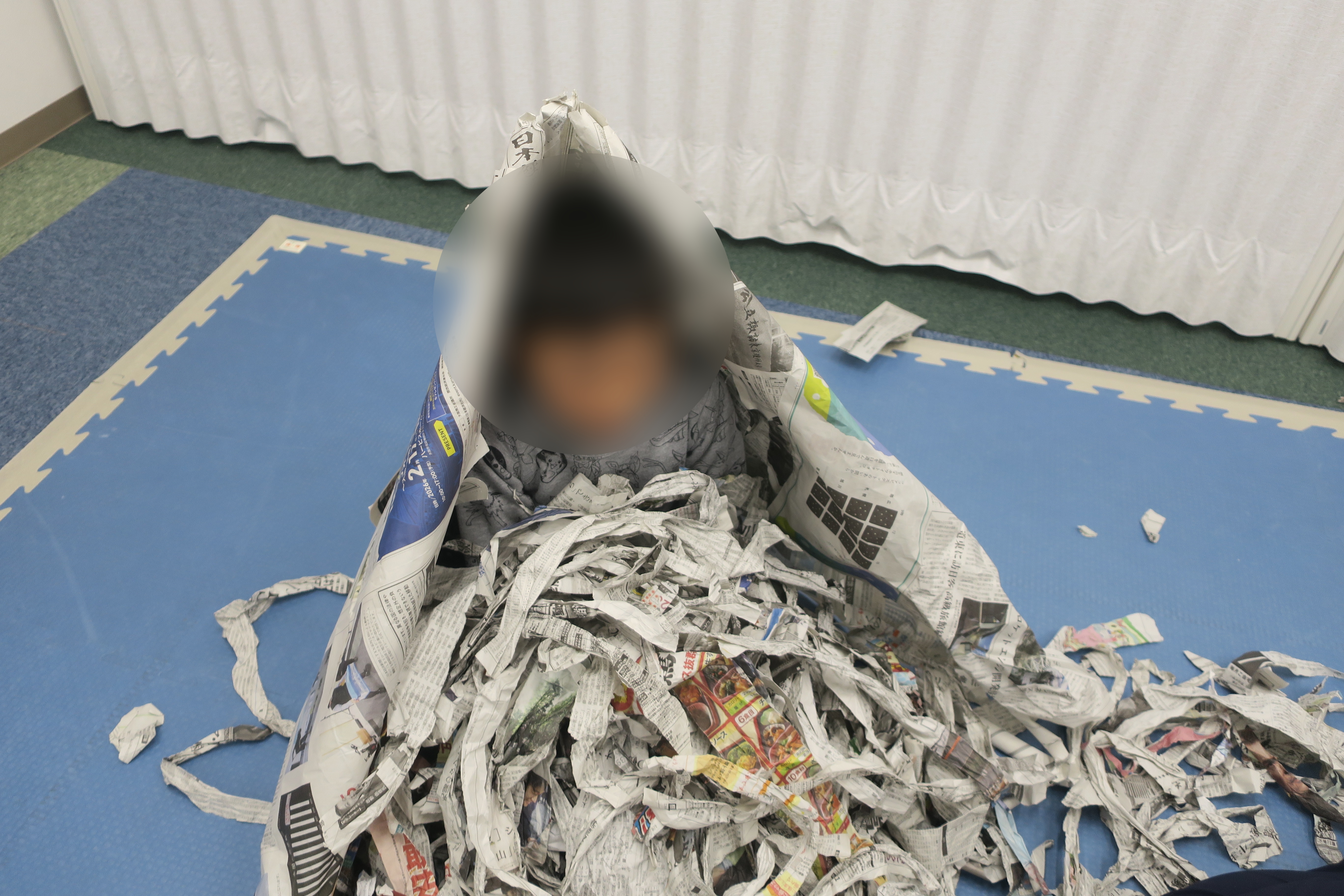 その後は新聞紙のプールで遊びました。たくさんの新聞紙に子ども達は大はしゃぎ!
