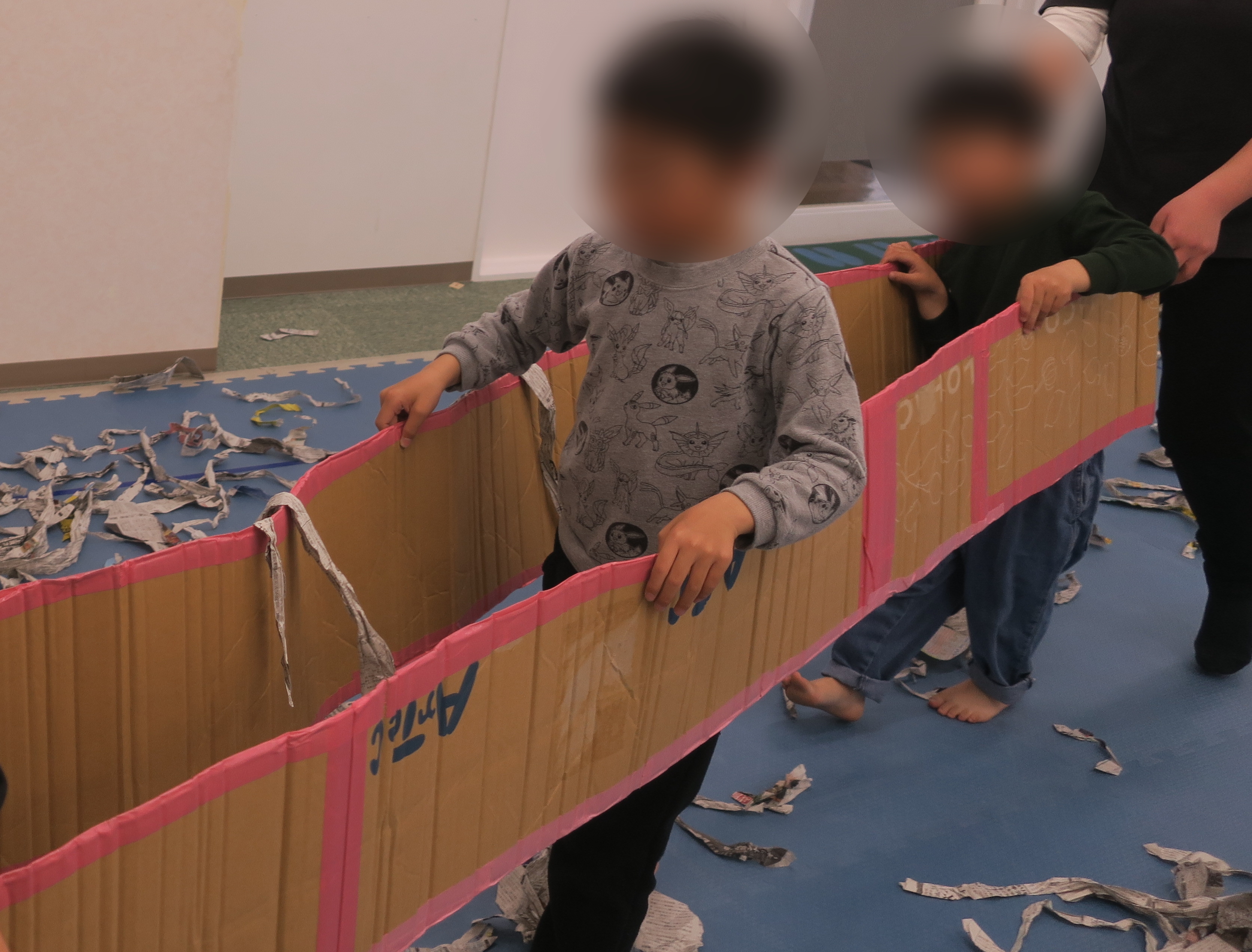 素早くくぐり抜ける姿はまるで忍者のよう🥷新聞紙を破らないように、身体の使い方を上手にコントロールすることができました!
