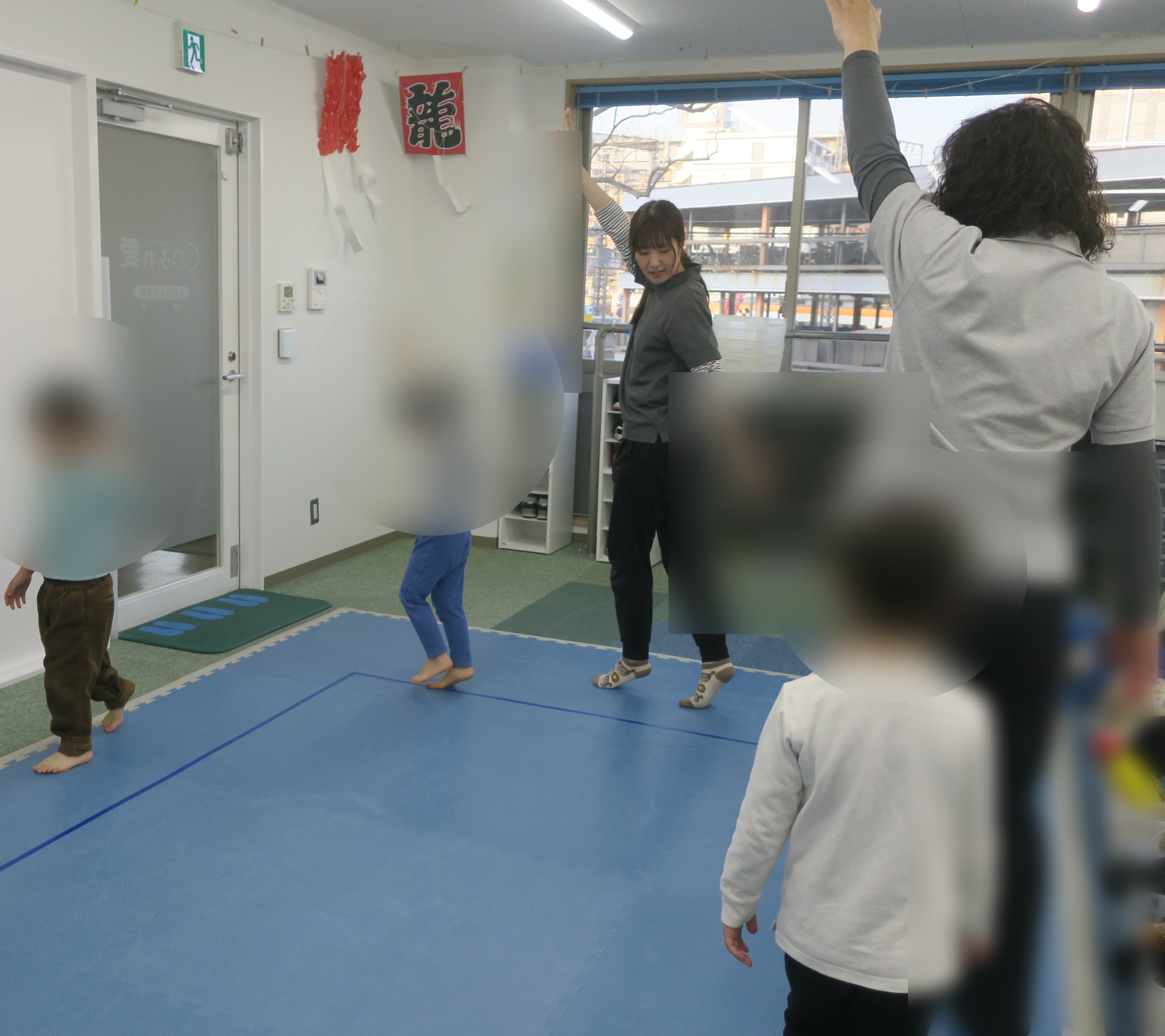 繰り返し行っている活動で、音楽に合わせて力加減を調節しながら、全身や手先をしっかり動かします。